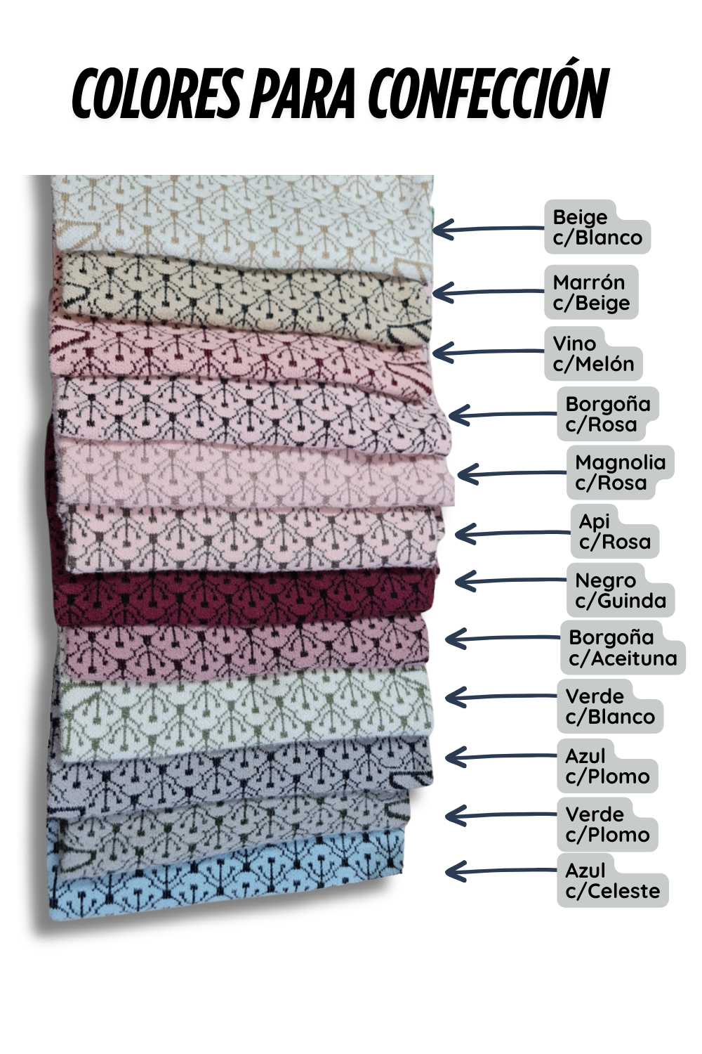 | Color | Aceituna, Api, Azul, Beige, Borgoña, celeste, Magnolia, Marrón, Negro, Plomo, Verde, Vino |